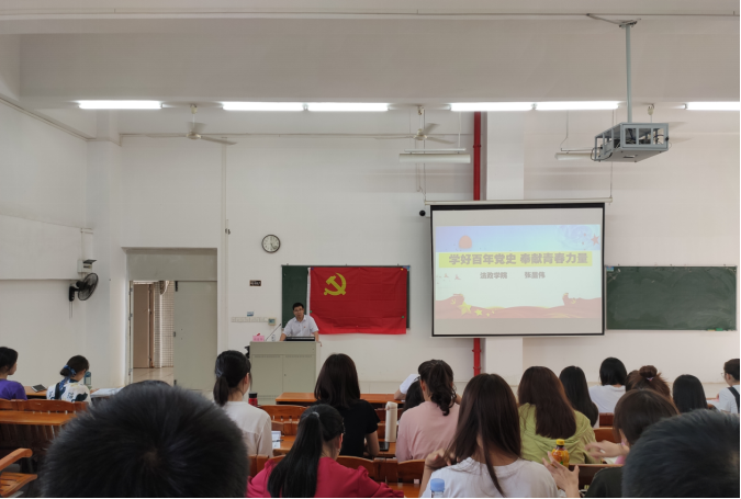 4月14日下午,法政公司党委书记陈伟斌教授和经理张显伟教授在二教B5401为tyc122cc太阳成集团的党员、发展对象和入党积极分子讲授了“思政第一课”,公司146名同学参加了本次学习。