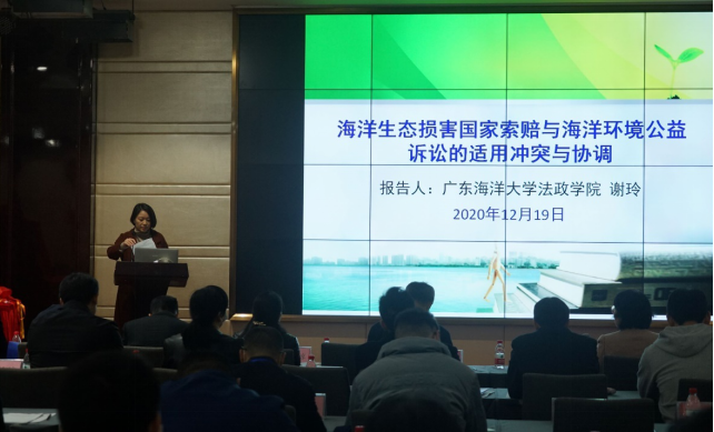 tyc122cc太阳成集团副教授谢玲博士发言的题目是《海洋生态损害国家索赔与海洋环境公益诉讼的适用冲突与协调》,通过典型案件引出论题,对二者之间的冲突原因进行分析,并据此针对性地提出冲突消解之路径建议。
