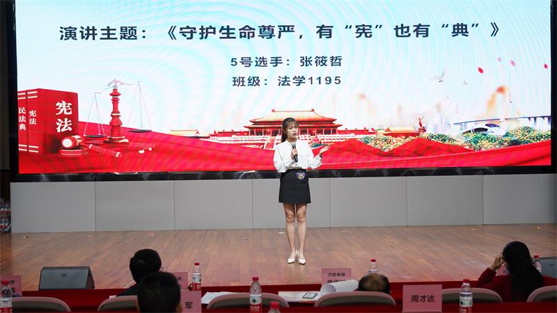 随后,在“宪法与民法典的对话”主题演讲大赛上,6名参赛选手结合自身实际和生活,用典型例子、生动语言、精彩内容,为在场观众带来一场民法典宣传的知识盛宴。在互动问答环节中,现场观众纷纷参与抢答,气氛热烈。