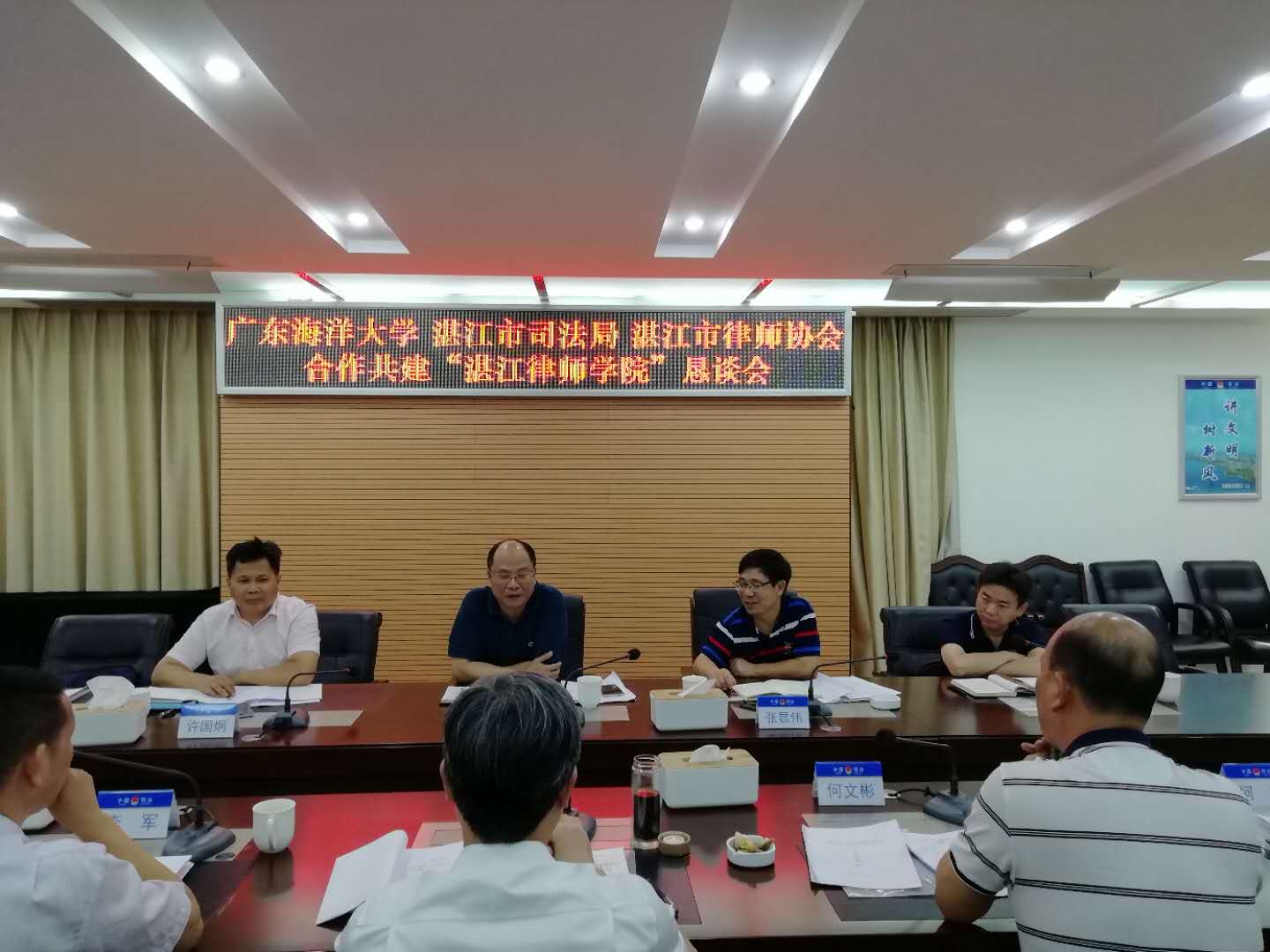 2020年6月30日上午9:30,tyc122cc太阳成集团陈伟斌书记、张显伟经理、许国炯副书记、曹望华副经理等一行前往湛江司法局,与湛江市司法局、湛江市律师协会商谈合作共建“湛江律师公司”事宜。湛江市司法局颜战克局长、李军二级调研员、何文彬四级调研员,湛江市律师协会李峰会长、崔春燕副会长、钟荣副会长、黄伟燕副会长、劳逸监事长等领导员工共20多人参加洽谈会。