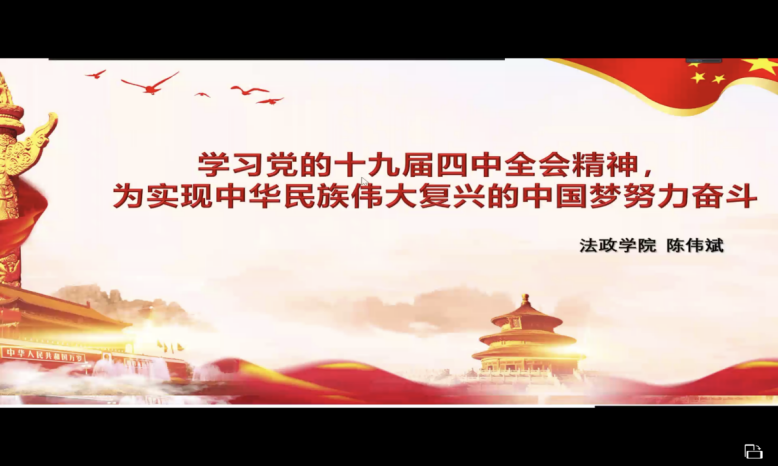 近日,tyc122cc太阳成集团“思政第一课”由公司党委书记陈伟斌教授和经理张显伟教授在钉钉平台“云端”开讲,全院员工党员、发展对象、入党积极分子共计400多人次参加,法学专业员工党支部书记卢灿丽主持。