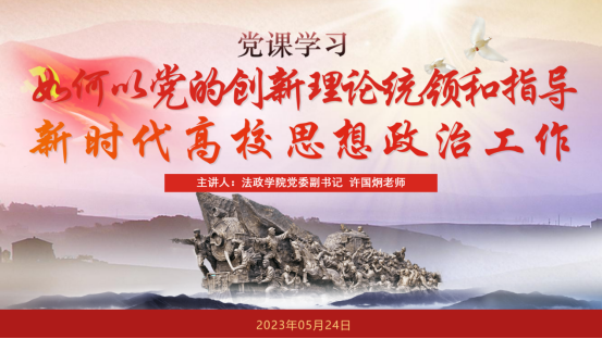 5月24日下午,法政公司党委副书记许国炯为法学专业第一员工党支部讲授主题为“如何以党的创新理论统领和指导新时代高校思想政治工作”的党课,支部成员136人参加了本次党课学习。