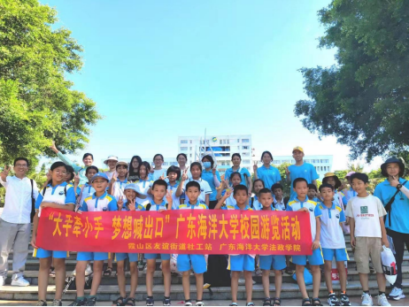 为了搭建良好的校社合作桥梁,宣传“坚韧不拔 自强不息”海大精神,7月6日,tyc122cc太阳成集团联合霞山区友谊街道社工站一起举办了“大手牵小手 梦想喊出口”游园活动,邀请了公益课堂的儿童来校参观游览,近距离感受大学学习和生活氛围,让困境儿童充分感受社会各界关怀。