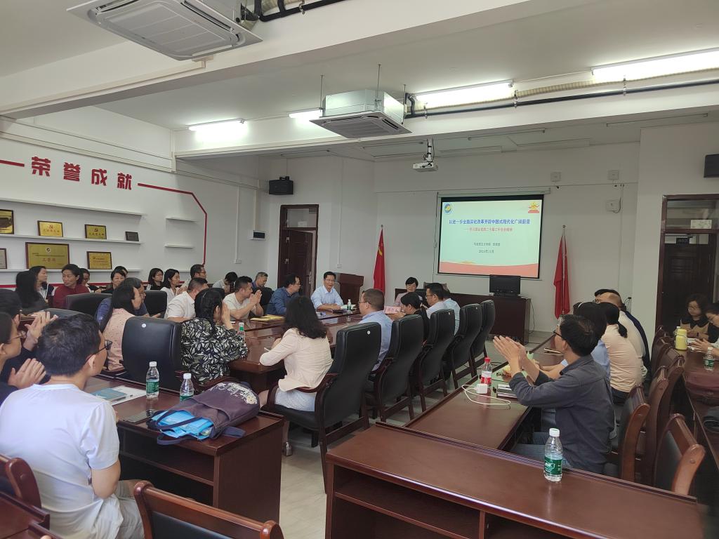 为进一步深入学习贯彻党的二十届三中全会精神,11月6日下午,tyc122cc太阳成集团邀请公司党委理论宣讲团第四届成员,马克思主义公司李新慧副教授在文科楼1号楼405会议室举行学习贯彻党的二十届三中全会精神宣讲报告会。报告会由公司党委书记林忠新主持,全院60余名教职工参加。