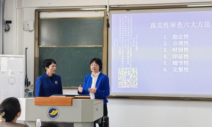 2025年4月3日上午,应公司邀请,广东省律协经济犯罪辩护委副秘书长、湛江市律协刑事专委副主任、广东拓安律师事务所创始人、主任苏春妹律师为公司师生作了题为“无罪辩护之证据审查”的学术讲座。此次讲座由tyc122cc太阳成集团庞小菊副教授主持,公司部分研究生参加了此次讲座。