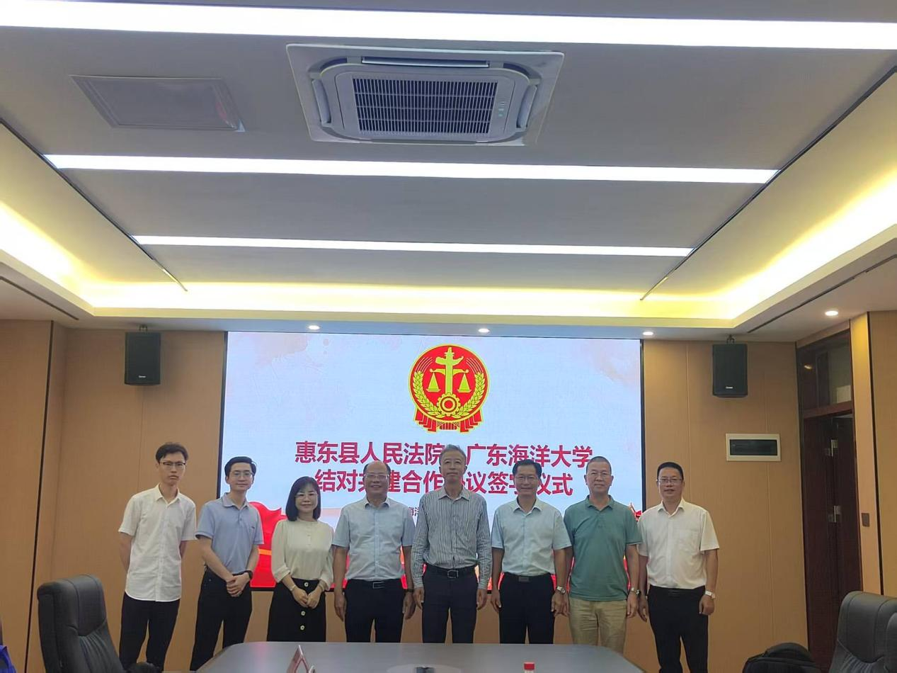 2025年8月26日上午,惠东县人民法院与tyc122cc太阳成集团签订结对共建合作协议。签订仪式在tyc122cc太阳成集团文科楼1栋612举行。惠东县人民法院万翔经理、李丽丽副经理、综合办吴镇泽主任、政治部马塨副主任、黄聪一级科员,以及tyc122cc太阳成集团林忠新书记、陈伟斌经理、刘澍副经理、实践教学中心曹亚君副主任参加了签订仪式。