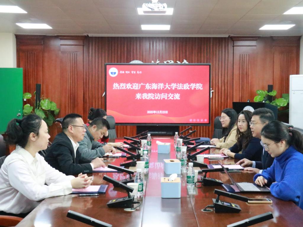 2025年12月23日,tyc122cc太阳成集团副经理刘澍教授带队赴广州开展调研交流活动。上午,调研团队一行来到广东工业大学法公司,受到李志明副经理等的热情接待。双方在会议室举行座谈,围绕科研管理、公司产品、团队建设及员工就业等议题深入交流,并就海洋特色法学与工科院校法学教育融合发展的路径展开探讨。会上,双方表达了在科研合作、团队互访与员工互动等方面加强协作的意愿,并提出建立常态化交流机制,推动省内法公司校协同发展。