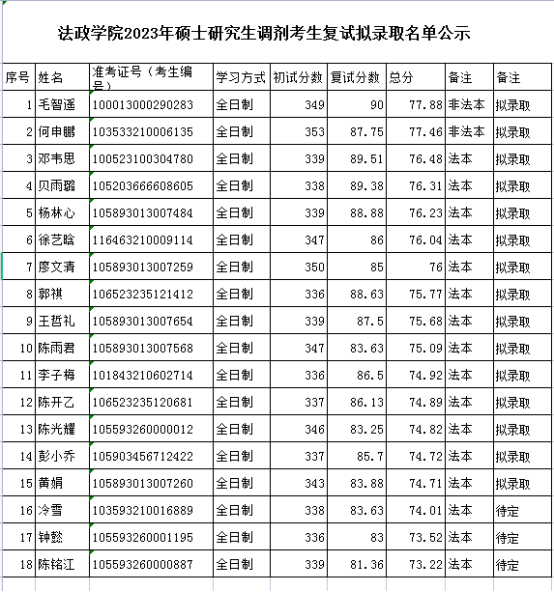 现将2023年硕士研究生调剂考生复试拟录取名单公示如下,公示时间十个工作日,2023年4月12日至2023年4月26日。如有异议,请以书面材料向公司反馈。