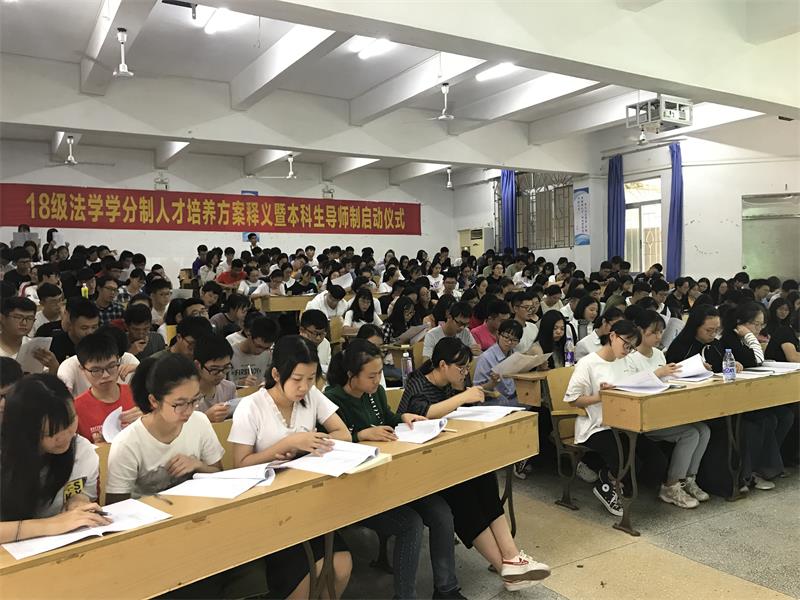10月14日上午由法学系主任万宗瓒博士后主讲的18级法学学分制人才培养方案释义暨本科生导师制启动仪式于海滨校区电教楼101室举行,法学专业2018级252名同学参加。